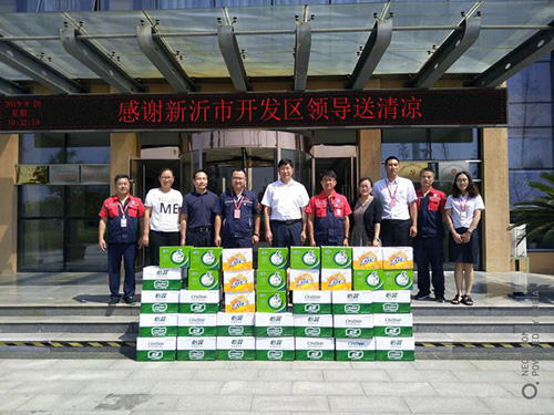 期間,慰問組為生產人員發放防暑降溫慰問品,叮囑廣大職工保重身體,預防高溫中暑,注意安全生產。王曉東重點詢問了徐州東方雨虹的生產經營情況,對公司為地區經濟發展做出的貢獻表示充分肯定,同時指出,希望徐州生產基地加快科技創新的步伐,持續提供優質產品和服務,保持高質量穩步發展。