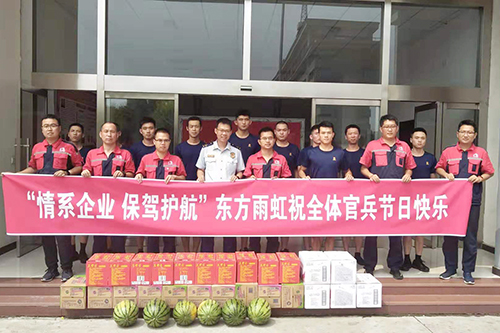 8月1日上午,東方雨虹唐山生產基地組織管理人員前往唐山市消防支隊、開發區管委會派出所,看望慰問全體消防官兵,送去建軍92周年的節日問候。
