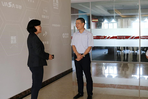 5月16日上午,建德市委常委、組織部長王江一行調(diào)研東方雨虹杭州生產(chǎn)基地。 期間,東方雨虹杭州生產(chǎn)基地廠長兼建設(shè)總指揮李景絨帶領(lǐng)調(diào)研組參觀了杭州東方雨虹黨員活動室,詳細(xì)介紹了黨建工作的開展情況,隨后帶領(lǐng)調(diào)研組深入一線,參觀防水涂料、砂漿等生產(chǎn)車間。