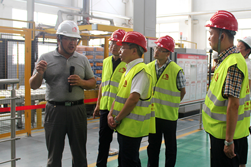 華砂公司董事長方世畢、唐山生產基地廠長閆瀟彬、副廠長趙來望等陪同考察團先后參觀了生產基地的各個生產車間,唐山二廠建設總指揮馬到原為考察團詳細講解了公司的發展現狀、生產線的工作流程、技術的先進性等。考察團成員對東方雨虹的工藝特點、產品優勢等興趣盎然,贊賞有加。   鄒遠駿高度肯定了唐山東方雨虹取得的成績,他表示生產基地的自動化水平高、環保、創新、整潔,令人贊嘆。鄒遠駿表示十分歡迎東方雨虹到綿竹發展,開拓當地的砂漿銷售市場,以期實現企業與社會效益的共贏。