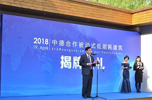 大會期間,進行了2018年中德合作被動式低能耗建筑揭幕儀式。在此次中德雙方合作的被動式低能耗建筑試點項目中,外墻保溫供材與施工由江蘇臥牛山提供。臥牛山憑借專業的技術人員和優秀的施工隊伍順利完成項目工程,并通過甲方驗收,獲得了德方的認可與贊賞。