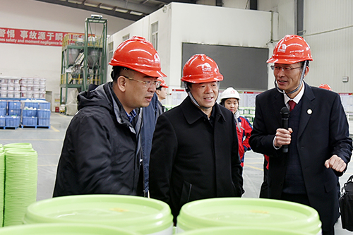 李澄陪同調研團參觀了岳陽生產基地的水性涂料車間和三期高分子車間,并詳細介紹了東方雨虹集團和岳陽生產基地的基本情況以及集團在岳陽投資的其他項目進展。在生產車間,陳飛詢問了生產基地各主要產品的生產工藝、產量、應用領域及銷售模式等情況。在得知公司榮獲多項榮譽,產品廣泛應用于地鐵、廠房、各種建筑領域并已遠銷多個國家和地區時,陳飛對公司的快速發展給予了充分的肯定。 參觀結束后,陳飛指出,東方雨虹能用二十多年的時間發展成為國內防水行業的龍頭企業實屬不易,希望東方雨虹能保持良好的發展勢頭,繼續加大科技研發投入,加大人才引進力度,再接再厲,取得更加優異的成績,為湖南省的經濟發展做出更大的貢獻。