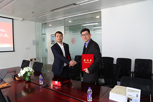 世茂集團(tuán)助理總裁兼采購公司總經(jīng)理陳嘉健(右)、東方雨虹集團(tuán)副總裁張洪濤(左)