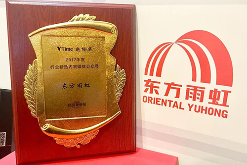 VTime·新橙獎評選致力于發(fā)現(xiàn)中國微信公眾號領(lǐng)域中有著突出特點,能夠在激烈的市場競爭中長期保持優(yōu)質(zhì)用戶體驗和高度用戶粘性的優(yōu)秀賬號。從社會價值、品牌價值、服務(wù)價值、傳播價值、關(guān)注度、前瞻性、影響力、文章閱讀量等方面對微信公眾號進行綜合考量。 2017年,東方雨虹公眾號先后推出過關(guān)于企業(yè)文化、優(yōu)秀雨虹人、奮斗精神、工廠建設(shè)、人文環(huán)境、學(xué)習(xí)、創(chuàng)新、新聞動態(tài)、經(jīng)典工程、虹遍中國等不同方面的策劃。力求從各個角度展現(xiàn)企業(yè)形象和員工風(fēng)貌,以小見大,從細節(jié)之處展現(xiàn)東方雨虹對于卓越品質(zhì)的不懈追求。 此次獲獎,是從專業(yè)層面對“東方雨虹”企業(yè)微信號綜合實力和價值的肯定。未來,東方雨虹將致力于提供更及時的企業(yè)資訊和更豐富的內(nèi)容,為讀者帶來更好的用戶體驗。