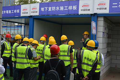 上午的活動在南沙蕉門河水岸廣場項目工地舉行,南沙區住建系統、中鐵建設集團合作伙伴及集團內部其他區域負責人、項目經理等約300人分批次觀摩。東方雨虹結合項目現場,展示了屋面和底板2個部位的防水做法,該項目負責人廣東東方雨虹業務一部經理李勇對樣板進行了全面的技術解說,為觀摩團體留下了深刻印象。