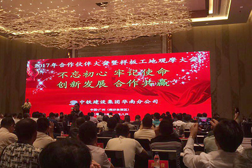 11月8日,中國中鐵建設集團有限公司華南分公司舉行“2017年合作伙伴暨樣板工地觀摩大會”,廣東東方雨虹受邀參加觀摩活動,雙方在之后的會議中簽訂戰略合作協議。
