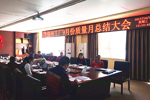 10月11日,錦州生產基地召開九月質量月總結大會,由廠長許朝暉主持,各部門相關人員參加了會議。