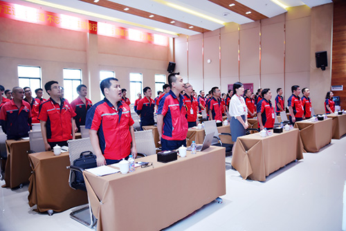 7月8日,岳陽東方雨虹年中總結(jié)大會在生產(chǎn)基地多功能廳隆重召開。