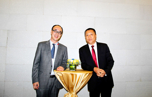 東方雨虹防水集團總裁劉斌(右)與萬科集團建筑研究與工程采購中心助理總經理都軍(左)合影