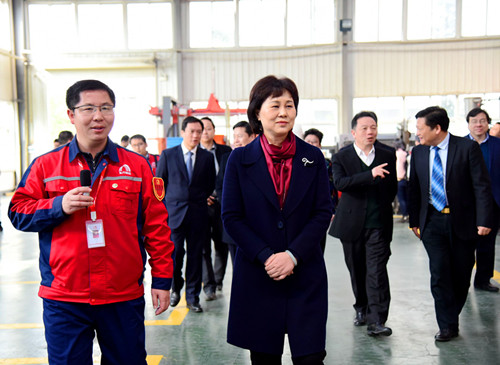 2月14日上午,湖南省委常委、統戰部長黃蘭香,省政協副主席楊維剛,省工商聯主席張健,岳陽市長劉和生,岳陽市委常委、統戰部長、副市長熊煒,云溪區區長余良勇等一行調研岳陽東方雨虹。岳陽東方雨虹廠長向鋒及各部門負責人接待調研組。