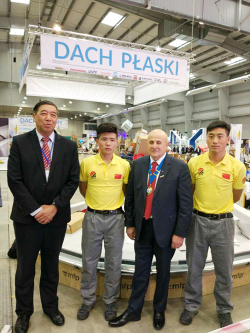10月26日-28日,由國際屋面聯合會組織的第26屆世界青年屋面工冠軍賽(World Championship For Young Roofers,簡稱“IFD大賽”)在波蘭華沙舉行。來自全世界12個國家的25支代表隊角逐瓦屋面、金屬屋面、平屋面等3個項目的比賽。而包括東方雨虹年輕的施工技師紀智慧、代存營在內的4名選手代表中國參賽平屋面項目。