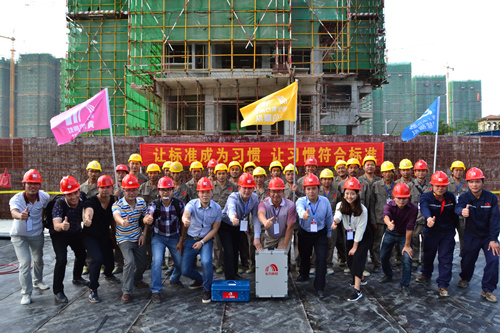 為提高防水工程施工質量和施工現場管理水平,解決因施工粗放而導致建筑滲漏率居高不下的問題,切實打造優質防水工程,東方雨虹決心在全國推行防水標準化施工服務體系。4月25日,東方雨虹工程渠道事業部與南寧東方雨虹防水工程有限公司共同組織舉辦了防水示范工地觀摩交流活動----東方雨虹嘉和城白鷺郡南山項目防水標準化施工推介會。 嘉和城項目施工現場警戒線、標示牌、司旗等一應俱全,工人們統一著裝,以良好的風貌列隊進場,嚴格執行標準化施工的要求。