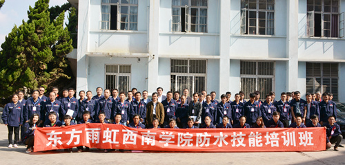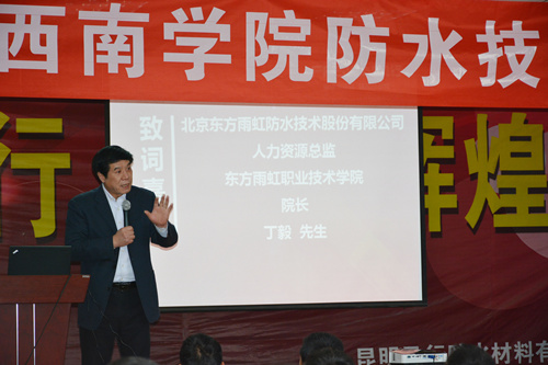 4月7日上午,東方雨虹職業(yè)技術學院西南學院在昆明風行防水材料有限公司組織開展了獲取國家職業(yè)資格證的防水技能專項培訓。來自四川、云南等地的工程渠道代理商及施工工人、直屬業(yè)務施工工人共計60余名學員參加了本期培訓班。 昆明風行防水材料有限公司總經(jīng)理呂學強先生首先致歡迎詞,并預祝各位學員取得優(yōu)異成績。會上,東方雨虹人力資源總監(jiān)、東方雨虹職業(yè)技術學院院長丁毅先生發(fā)表了關于工匠精神、傳承及未來防水行業(yè)防水工人的要求及社會地位提高的講話,并強調了術業(yè)有專攻,本次防水技能培訓一是要注重精神,切實做到“匠心匠魂”;二是要注重流程,熟練掌握技能,通過培訓不斷學習,助推防水行業(yè)的飛躍。