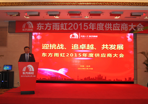 1月20日,東方雨虹2015年度供應(yīng)商大會(huì)在北京順利召開(kāi)。會(huì)議以“迎挑戰(zhàn),追卓越,共發(fā)展”為主題,供需雙方對(duì)今后繼續(xù)開(kāi)展戰(zhàn)略合作進(jìn)行了深入探討。賽拉尼斯、巴斯夫、瓦克等共計(jì)50家供應(yīng)商參會(huì)。東方雨虹執(zhí)行董事長(zhǎng)向錦明、防水集團(tuán)副總裁陳永初、財(cái)務(wù)總監(jiān)徐瑋、采購(gòu)供應(yīng)副總監(jiān)楊曉菲等出席。