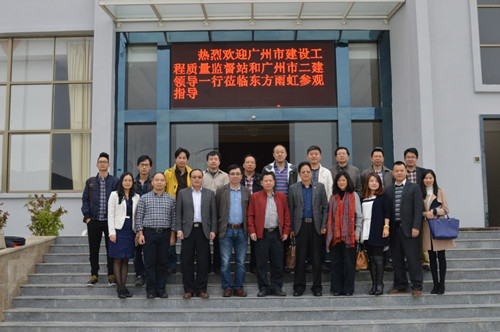 12月3日、4日,東方雨虹惠州生產基地召開了《廣州市建筑工程施工工藝標準系列視頻》防水專輯工作啟動會。廣州市建設工程質量監督站站長廖集中、副站長張勇,廣州市第二建筑工程有限公司副總經理李俊華,廣東省建筑防水協會常務副會長瞿培華、秘書長夏展熙等領導蒞臨參觀。東方雨虹工程總監阮和章,廣東公司副總經理孫福琴、總工程師周子鵠、市場部經理余佩賢等人做了全程接待與陪同。